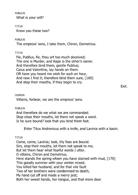 Enter Titus Andronicus with a knife, and Lavinia with a basin.
