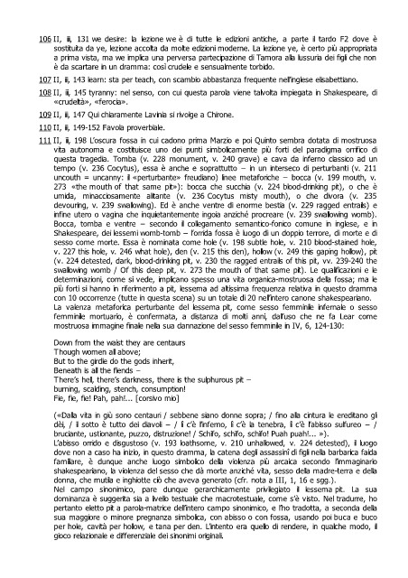 sesso come morte. Essa è nominata come hole (v. 198 subtle hole, v. 210 blood-stained hole,