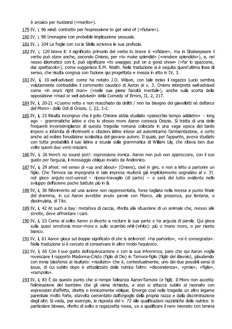 193 IV, ii, 83 È da questo punto che si rompe l’alleanza Aaron-Tamora (e figli). Il Moro non accetta