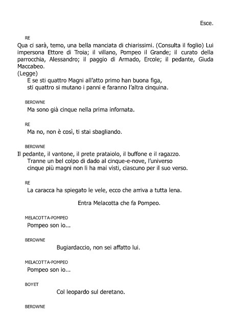 impersona Ettore di Troia; il villano, Pompeo il Grande; il curato della