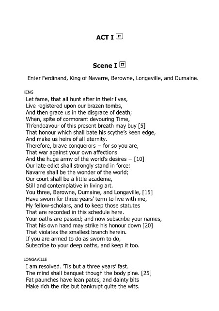 Enter Ferdinand, King of Navarre, Berowne, Longaville, and Dumaine.
