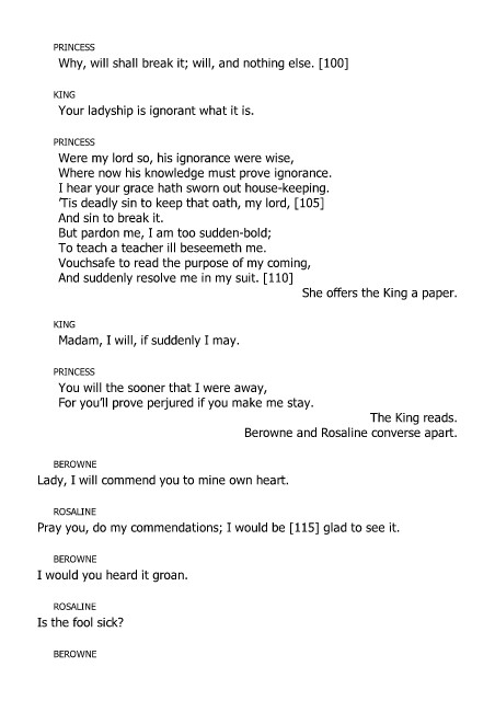 Berowne and Rosaline converse apart.