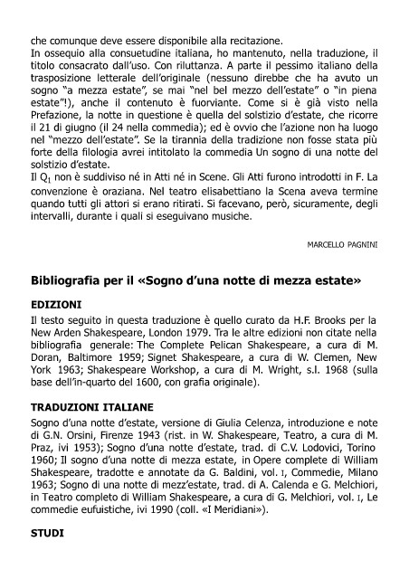 1963; Sogno di una notte di mezz’estate, trad. di A. Calenda e G. Melchiori,