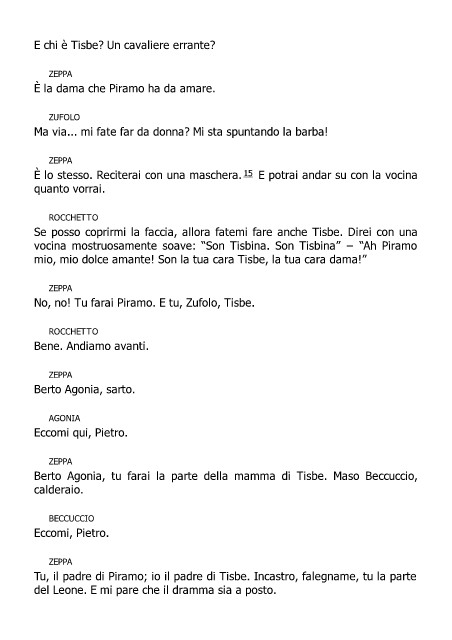 No, no! Tu farai Piramo. E tu, Zufolo, Tisbe.
