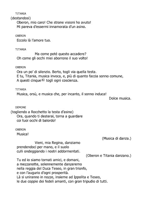 E tu, Titania, musica invoca, e, più di quanto faccia sonno comune,