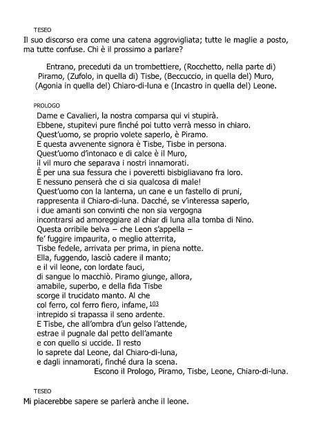 Escono il Prologo, Piramo, Tisbe, Leone, Chiaro-di-luna.
