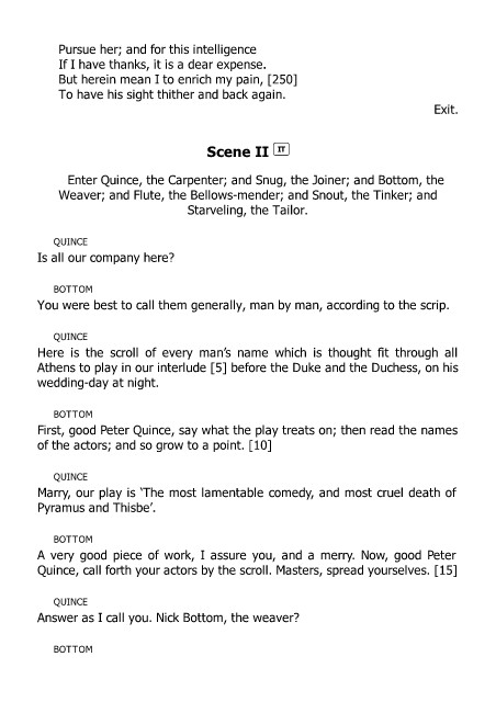 Quince, call forth your actors by the scroll. Masters, spread yourselves. [15]