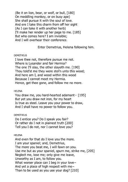 Enter Demetrius, Helena following him.
