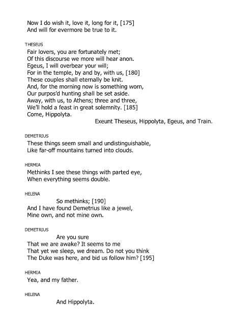 Exeunt Theseus, Hippolyta, Egeus, and Train.