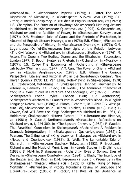 «Journal of English Literary History», XLIII (1976); E.B. Gilman, «Richard II»