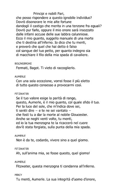 Tu menti, Aumerle. La sua integrità d’uomo d’onore,