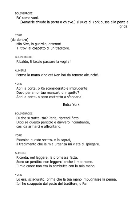 [Aumerle chiude la porta a chiave.] Il Duca di York bussa alla porta e
