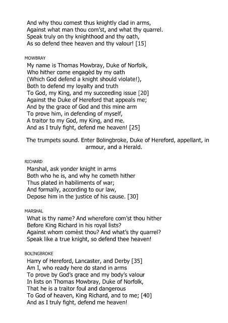 The trumpets sound. Enter Bolingbroke, Duke of Hereford, appellant, in