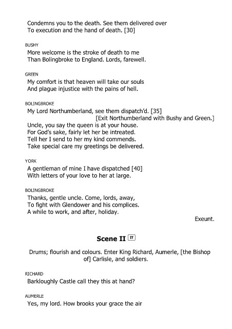 Drums; flourish and colours. Enter King Richard, Aumerle, [the Bishop