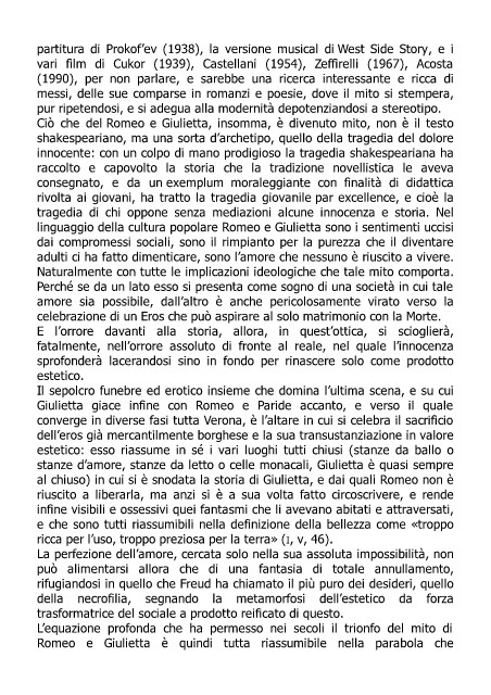 Ciò che del Romeo e Giulietta, insomma, è divenuto mito, non è il testo