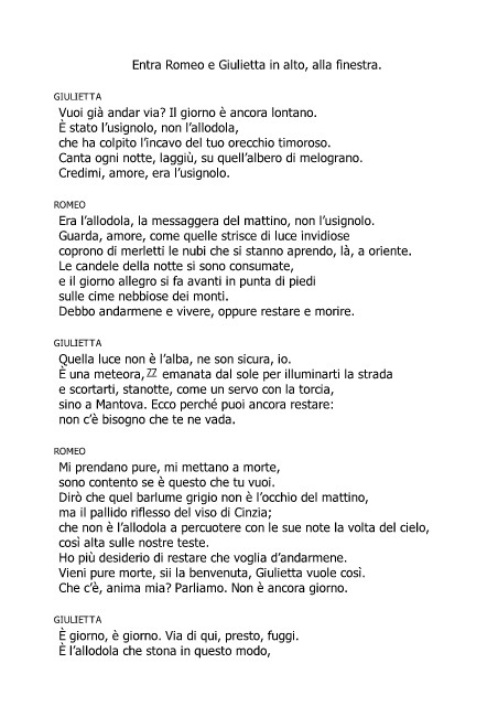 Era l’allodola, la messaggera del mattino, non l’usignolo.