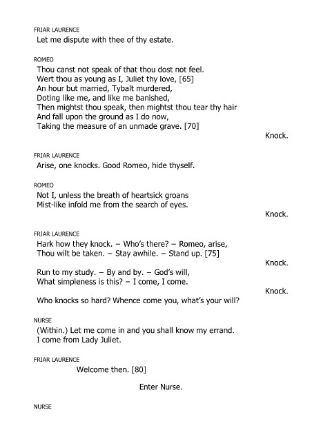 Hark how they knock. - Who’s there? - Romeo, arise,