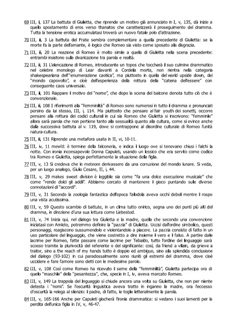 72 III, iii, 31 L’elencazione di Romeo, introducente un topos che toccherà il suo culmine drammatico