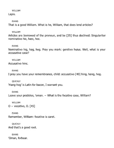 Nominativo hig, hag, hog. Pray you mark: genitivo huius. Well, what is your