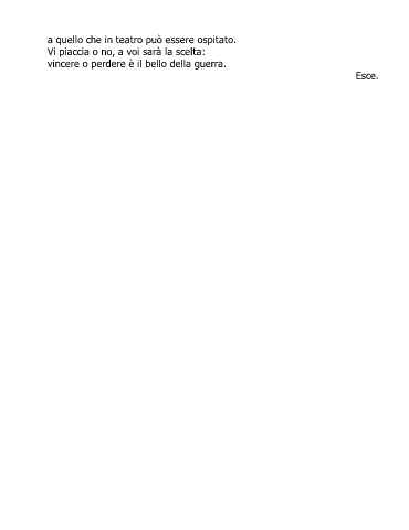 a quello che in teatro può essere ospitato. Vi piaccia o no, a voi sarà la scelta: vincere o perdere è il bello della guerra. Esce.