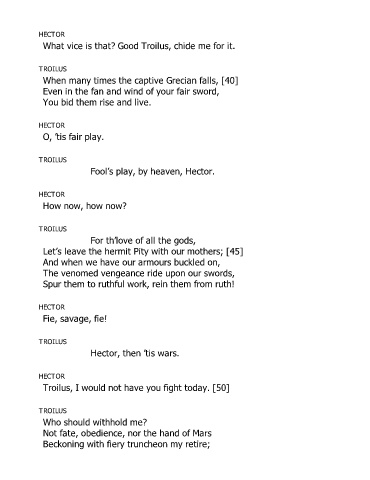 Troilus, I would not have you fight today. [50]